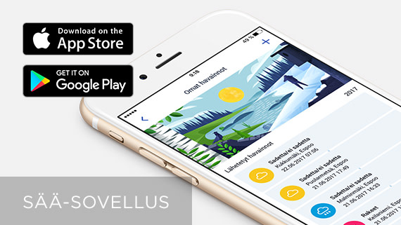 Lisätiedot:Omat havainnot -pilottiprojektin verkkosivuSää-sovelluksen latauslinkit Android ja iOS -älypuhelimille http://ilmatieteenlaitos.fi/alypuhelimetTietoa varoituksista ja toimintaohjeet äärisäihin http://ilmatieteenlaitos.fi/tietoa-varoituksistaSäähavaintojen tekemisestä nyt ja tulevaisuudessa Atmos-verkkolehdessä