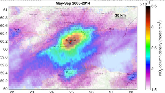Uusi tutkimus osoittaa, että satelliittipohjaisia havaintoja voidaan hyödyntää Helsingin ilmalaatuseurannassa. Satelliittihavainnot ovat tutkimuksen mukaan kykeneviä kartoittamaan typpidioksidipitoisuuksia pääkaupunkiseudulla. Typpidioksidi (NO2) on saastuttava kaasu, joka syntyy pääasiassa palamisprosesseissa, kuten. liikenteen, teollisuuden ja energiantuotannon yhteydessä, ja on suurina pitoisuuksina myrkyllistä maanpinnan lähellä. Typpidioksidi on lyhytikäinen kaasu, joka pysyy pääosin päästölähteiden lähellä.