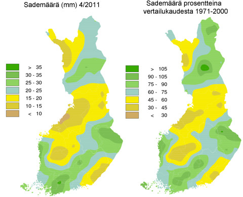 Lämpötila- ja sadekartat 2011