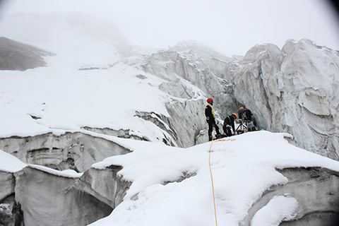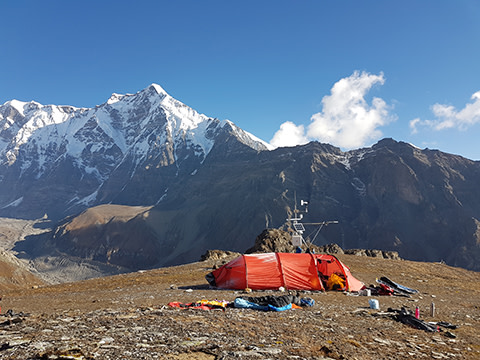 Retken haastavin osuus oli neljän päivän vaellus Khurkian kylästä Sunderdhunga-jäätikön juurelle, jonne perustettiin perusleiri (n. 4700 m). "Vaelluksen teki haastavaksi monsuunin sorruttamat kulkuväylät, jyrkät nousut ja laskut korkeassa ilmanalassa sekä sade, joka teki kulkuväylistä liukkaita ja sortuma-alttiita. Reitti oli loppuvaiheessa liian hankala jopa mukana olleille muuleille", Ilmatieteen laitoksen Heikki Lihavainen kertoo retkestä.