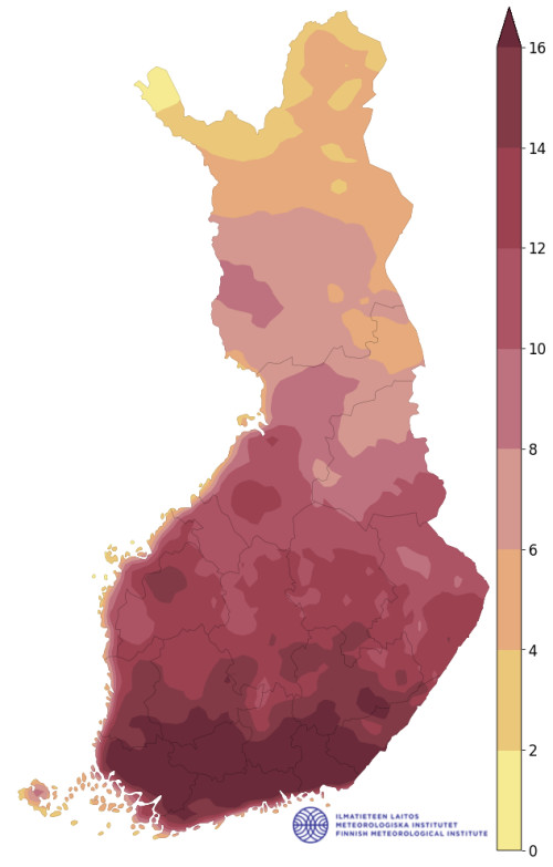 Jossain päin Suomea hellettä mitataan keskimäärin toukokuussa 3, kesäkuussa 8, heinäkuussa 16, elokuussa 9 ja syyskuussa alle 1 päivänä.