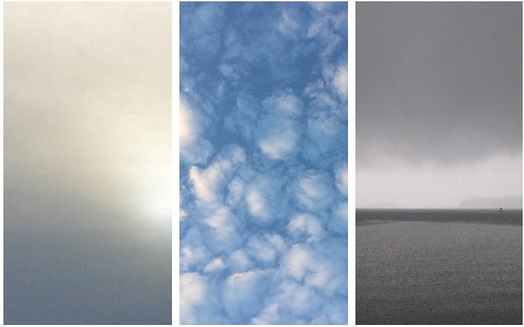 Verhopilven peittämä taivas on tylsän harmaa. Pilvi pimentää niin paljon, etteivät auringonvalon luomat varjot erotu.