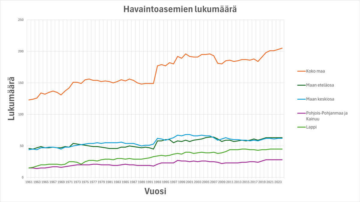 Herääkin kysymys, kumpi lopulta on helteisempi kesä: sellainen, jolloin hellettä on mitattu useana päivänä vain maamme muutamissa kolkissa, vai sellainen, jolloin hellettä on ollut ympäri maata, mutta vain muutamana päivänä? Vertailua hankaloittaa myös se, että päivän maksimilämpötilaa mittaavia säähavaintoasemia on vuosien saatossa ollut vaihteleva määrä: 1960-luvulla asemia oli noin 130, mutta 2020-luvulle tultaessa asemia on jo yli 200. Erityisesti Lapissa havaintoasemien määrä on kasvanut.