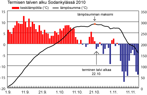 syksy alkaa, kun vuorokauden keskilämpötila laskee pysyvämmin +10 asteen alapuolelle