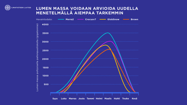 "Menetelmän avulla eri havainnot voidaan yhdistää ja lumen määrästä saadaan tarkempaa tietoa kuin koskaan aiemmin. Aiempi huomattavan suuri 33 prosentin epävarmuus lumen määrässä on pienentynyt arvoon 7,4 prosenttia", sanoo artikkelin pääkirjoittaja, Ilmatieteen laitoksen tutkimusprofessori Jouni Pulliainen.