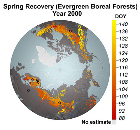 "Tuoreessa tutkimuksessa havaittiin, että pohjoisten havumetsien fotosynteesi on aikaistunut viimeisten noin neljäkymmenen vuoden aikana noin 8 päivällä keväisin", sanoo Ilmatieteen laitoksen tutkimusprofessori Jouni Pulliainen. Samalla boreaalisten metsien perustuotannon arvioitiin kasvaneen vuoden alkupuoliskolla 4 - 6 prosenttia kymmenessä vuodessa, mikä on huomattava lisäys globaalissa hiilinielussa ja mikä rajoittaa osaltaan ilmaston lämpenemistä.