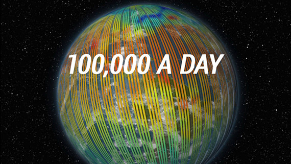 Kuvasarjassa näkyy maapallon hengitys eli miten maaliskuussa näkyy korkeita hiilidioksidipitoisuuksia, jotka kesällä laskevat vain noustakseen yhä korkeammalle seuraavana kevättalvena. (Reprinted with permission from Eldering et al., Science 358:5745 (2017)