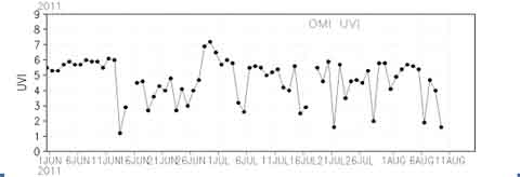 Etelä-Suomessa Jokioisten observatorion tarkkuusmittauksissa havaittiin kahtena peräkkäisenä päivänä, 28.–29. kesäkuuta, ennätyksellinen UV-indeksin arvo seitsemän. Monissa etelän talvilomakohteissa vastaava lukema ylittyy helposti.