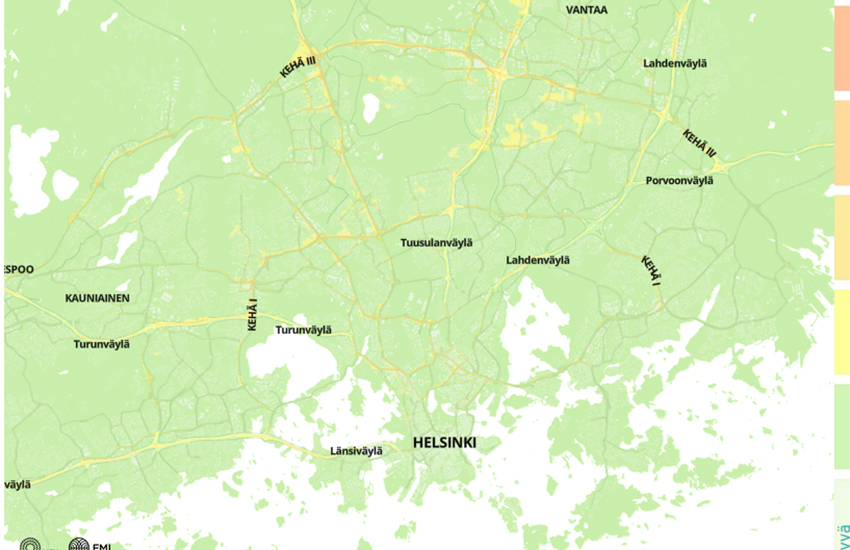 Pääkaupunkiseudun uusi ilmanlaatukartta kertoo ja ennustaa ilmanlaadun siellä, missä olet