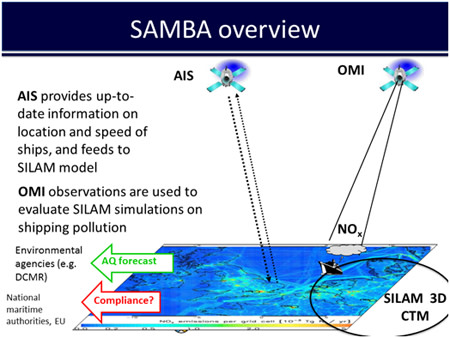 Merikuljetuksiin kohdistuu tulevina vuosina suuria paineita, minkä takia sekä viranomaiset että teollisuus kaipaavat luotettavaa ja kustannustehokasta päästöjen seurantapalvelua. Ilmatieteen laitos on yhdessä Alankomaiden ilmatieteen laitoksen ja Euroopan avaruusjärjestön ESAn kanssa kehittänyt uutta palveluratkaisua (SAMBA) merikuljetusten tasaveroisen kohtelun tukemiseksi. Ratkaisu yhdistää avaruudessa, ilmakehässä ja maanpinnalla toimivia järjestelmiä.