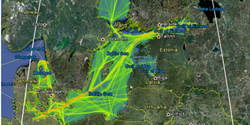 Kuva 2. Laivaliikenteen hiilidioksidipäästöt perustuen yksittäisten laivojen liikkumiseen.