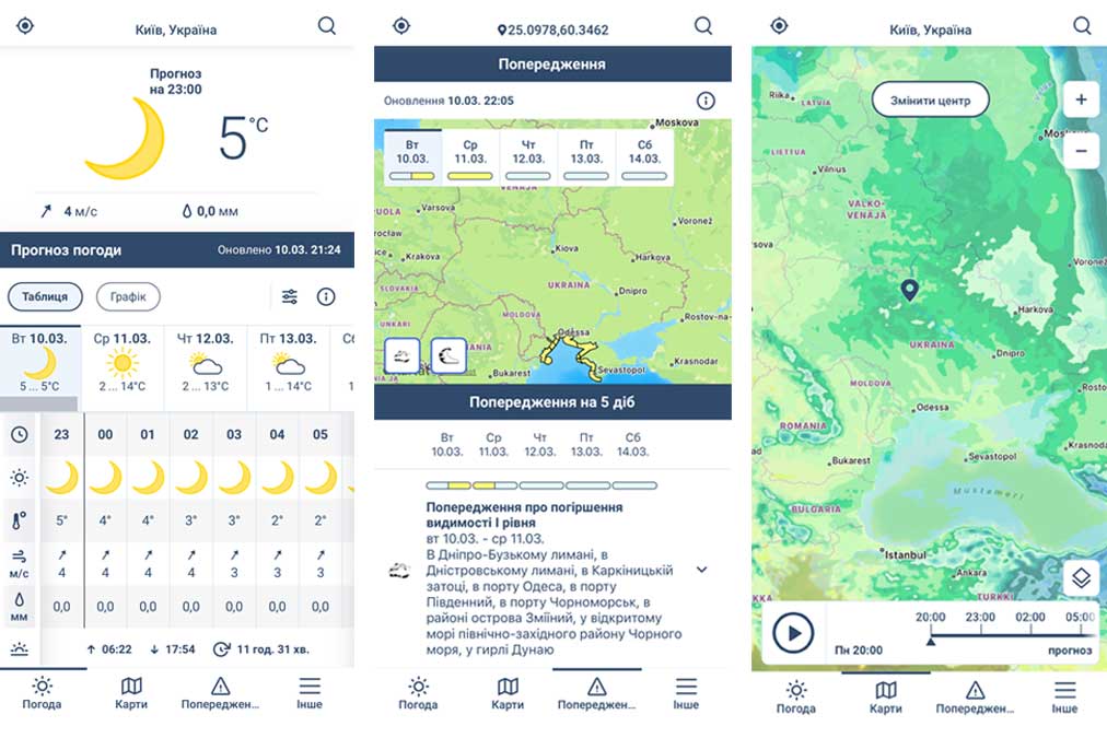 Hankkeen aikana kehitettiin myös uusia palveluja kansalaisille. Ukrainan hydrometeorologinen keskus on julkaissut verkkosivuillaan uusia sääpalveluja, ja yhteistyössä Ilmatieteen laitoksen kanssa kehitettiin myös mobiilisääsovellus. Ukrainan pelastuspalvelu ja sisäministeriö julkaisivat sovelluksen testiversion helmikuussa 2026. Sosiaalisessa mediassa sovellus sai innostuneen vastaanoton käyttäjiltä.